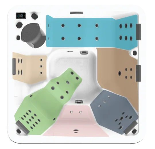 Composez votre spa selon vos envies avec un équipement de série (Relax Turbo Design), votre finition de tabliers et la couleur de la coque.