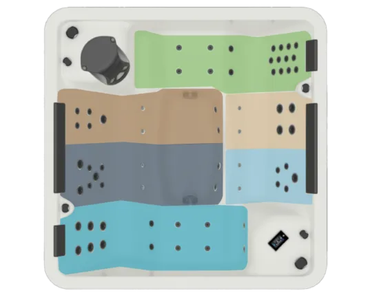 Il est proposé avec l’équipement Relax Turbo Design, 3 finitions de tabliers de série (tabliers avec angles lumineux en option) et 4 couleurs de coques, pour un spa à votre image.